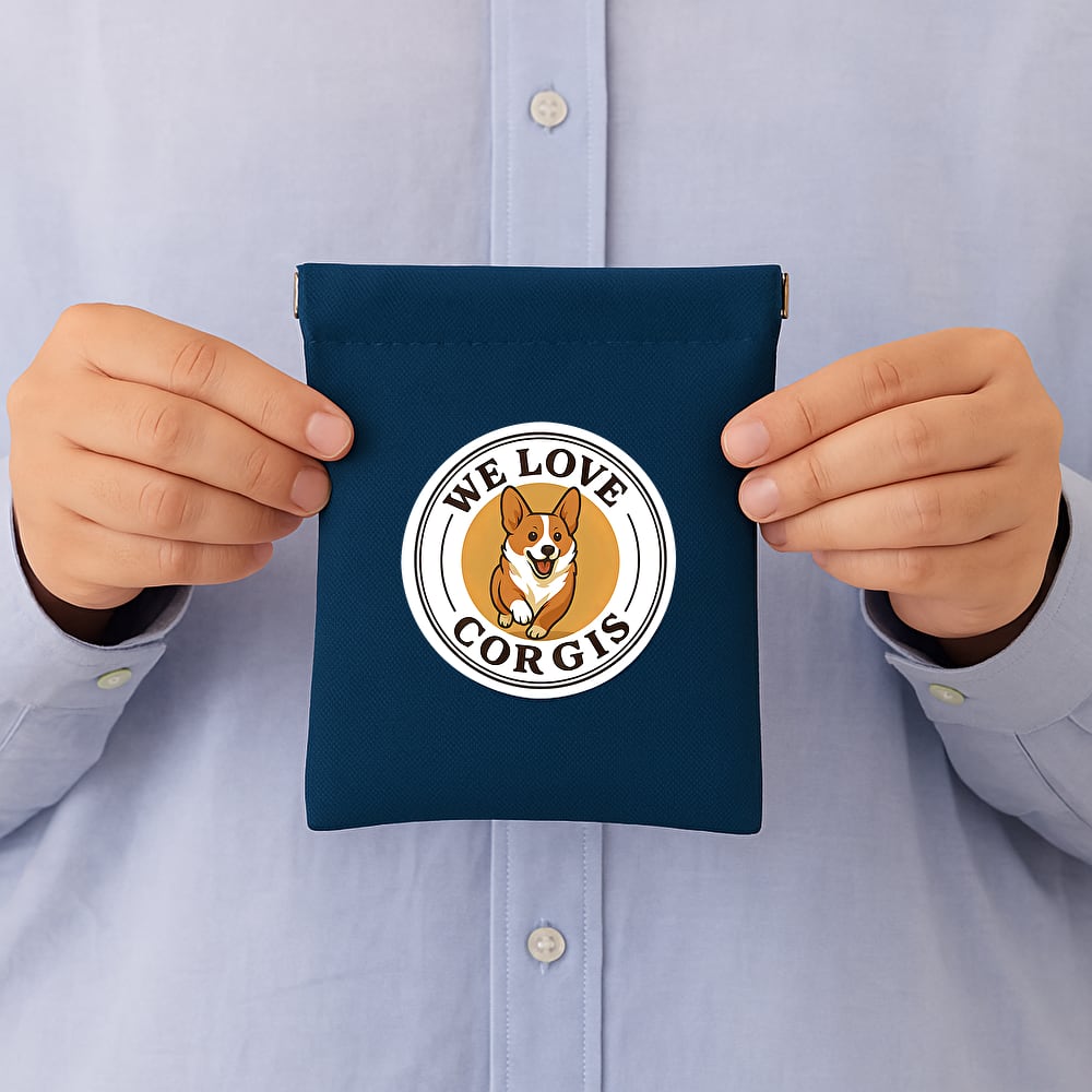 ・カラーは、落ち着いたトーンのネイビーブルーにコーギーデザインを採用。サイズは横幅約10cm、縦幅約13cm、ちょうど良いサイズ感で、使いやすさも抜群です。